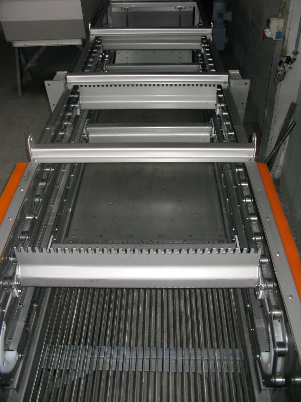 While the wastewater flows through the screen, the solid waste is trapped on the surface of the screen. The captured waste is removed from the bars by the rake arms, conveyed to the top and then discharged at the top of the screen.